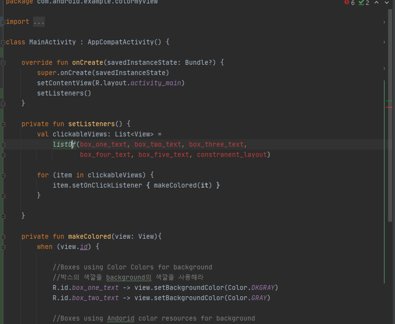 『 List<View> = list Of() Unresolved reference 』 에러를 출력하면서 진행이 되지 않습니다.