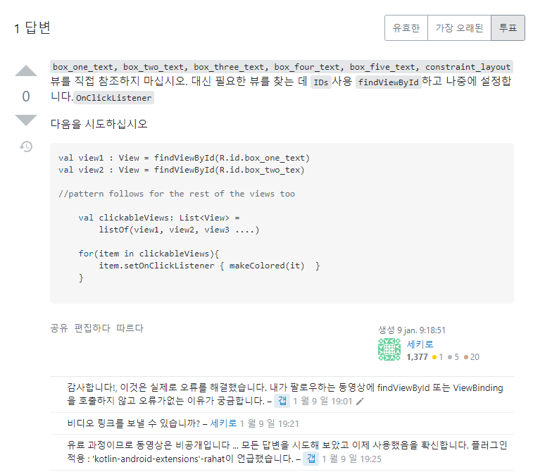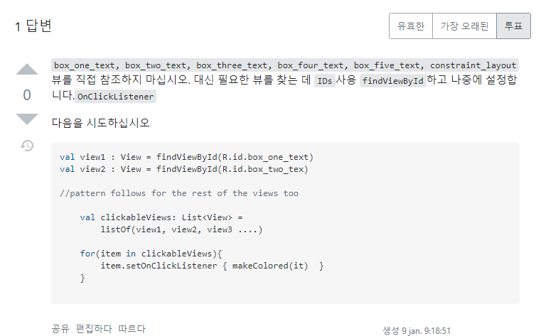 지금 나의 검색능력으로는 findViewById 답변의 솔루션이 한계인 듯하다.